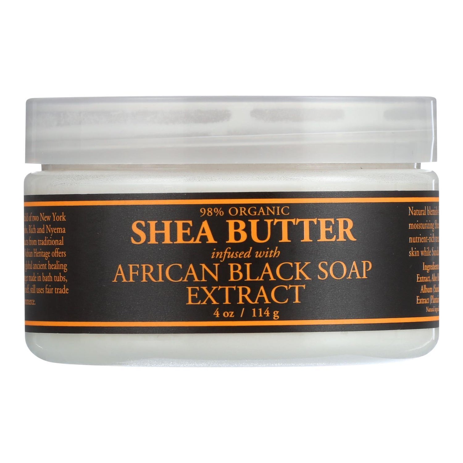 NUBIAN HERITAGE SHEA BUTTER INFUSED WITH AFRICAN BLACK SOAP EXTRACT USES TRADITIONAL AFRICAN INGREDIENTS TO HELP HEAL YOUR SKIN AND FIGHT THE APPEARANCE OF BLEMISHES. OUR FORMULA IS 98% ORGANIC, AND WE BLEND OATS, ALOE VERA AND SANDALWOOD OIL TO CLEAN AND CLARIFY YOUR SKIN NATURALLY WITHOUT ANY HARSH INGREDIENTS. WE'VE PACKED THIS MOISTURIZING SHEA BUTTER IN A 4 OZ. JAR.