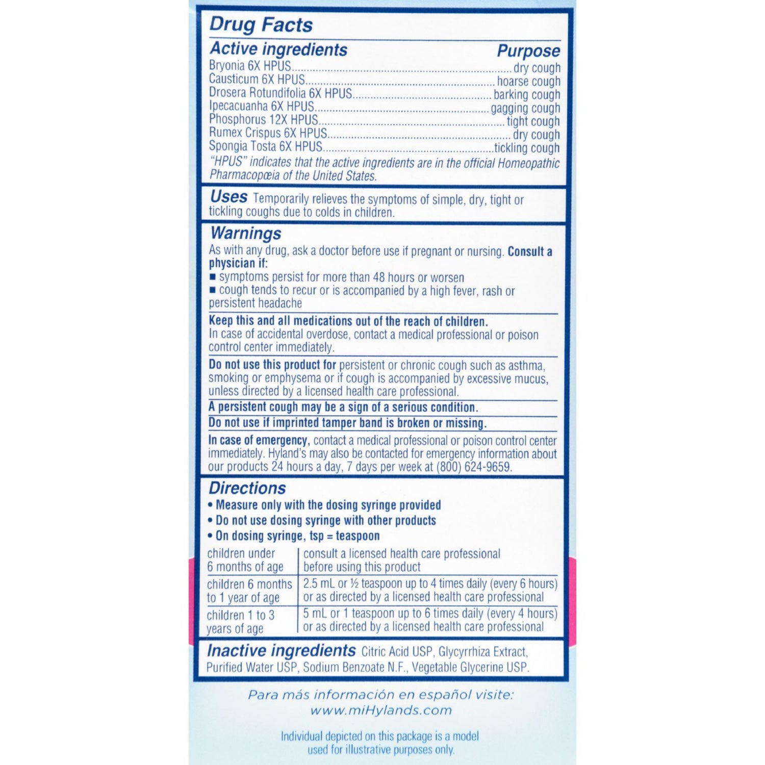 HYLAND'S BABY NATURAL RELIEF COUGH SYRUP IS FORMULATED TO PROVIDE RELIEF OF COUGHS DUE TO COLDS IN CHILDREN AGES 6 MONTHS AND OLDER. THIS NATURAL COUGH SYRUP PRODUCT CONTAINS NO ALCOHOL, ARTIFICIAL FLAVORS, DYES OR PARABENS, AND IT INCLUDES A SYRINGE FOR EASY, ACCURATE DOSING. EACH BOTTLE CONTAINS 4 F. OZ. OF HOMEOPATHIC COUGH SYRUP.