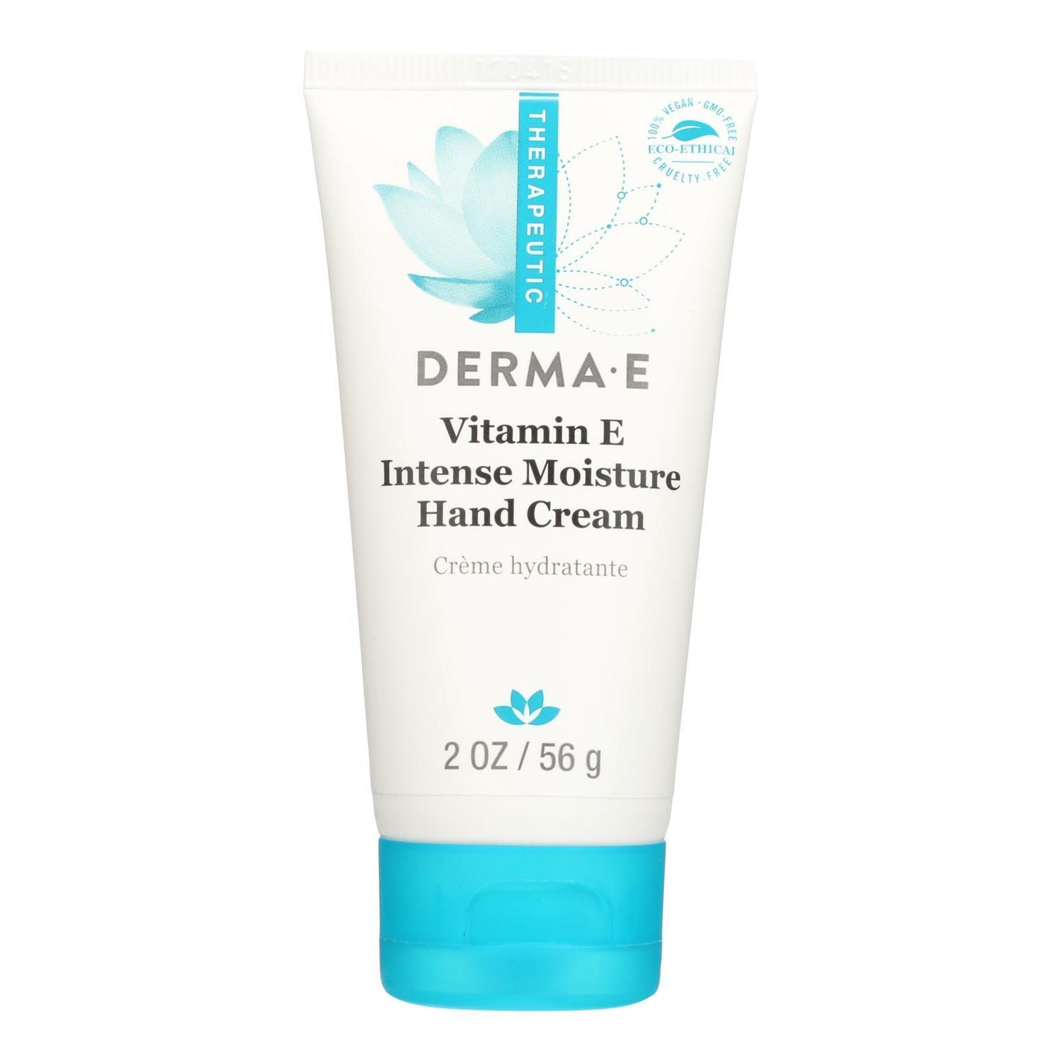 DERMA-E HAND CREAM, VITAMIN E INTENSE MOISTURE WORKS GENTLY TO REVEAL THE NATURAL RADIANCE AND PURITY OF YOUR SKIN WHILE RESTORING MOISTURE. FREE FROM ARTIFICIAL COLORING, PARABENS SULFATES, DERMA-E HAND CREAM VITAMIN E INTENSE MOISTURE IS GENTLE ENOUGH FOR REGULAR USE. BY USING NATURAL INGREDIENTS, LIKE MOISTURIZING ALOE AND JOJOBA OIL, DERMA-E HAND CREAM VITAMIN E INTENSE MOISTURE WORKS TO GENTLY PURIFY AND RESTORE NUTRIENTS AND MOISTURE TO YOUR SKIN. THIS PRODUCT IS VEGAN FRIENDLY AND MANUFACTURED USING CRUELTY-FREE METHODS. SEE LABEL FOR WARNINGS. INCLUDES ONE 2 OZ. BOTTLE OF DERMA-E HAND CREAM, VITAMIN E INTENSE MOISTURE.